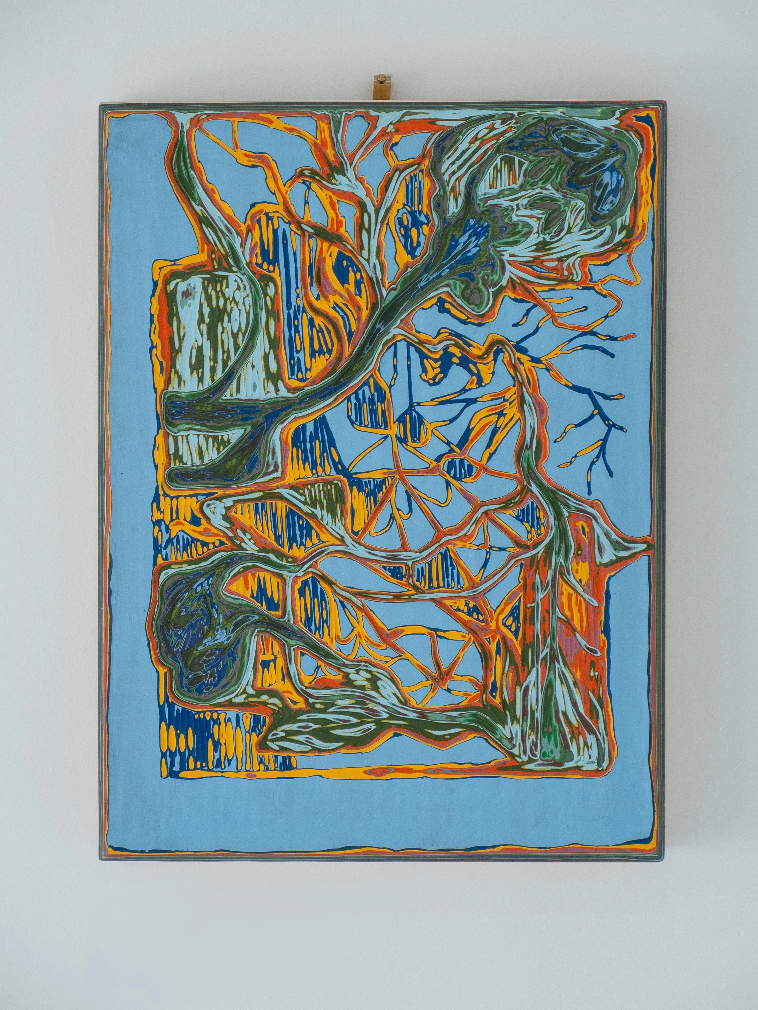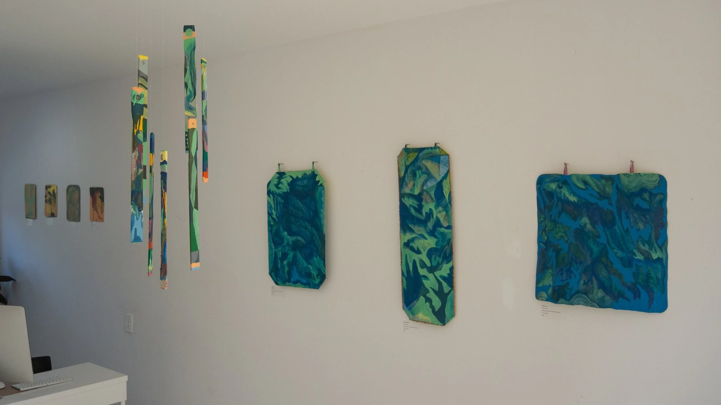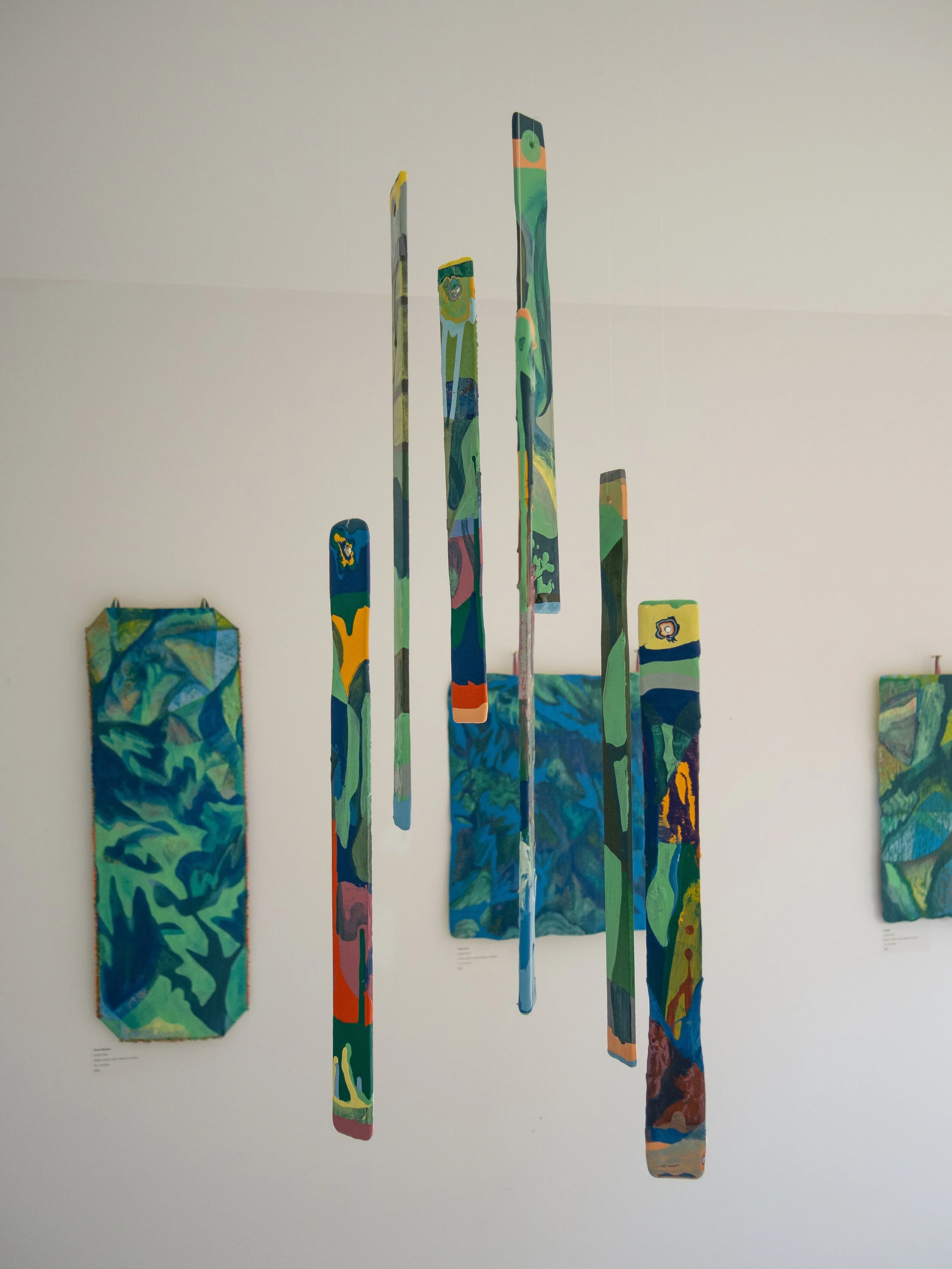 Ben Evely’s solo show Reassessing Excess builds on an interest in repurposing materials which accumulate in a studio practice. Whether it be paint leftover after a mural project, fabric found in a thrift shop, or the canvas off cuts from larger works.
